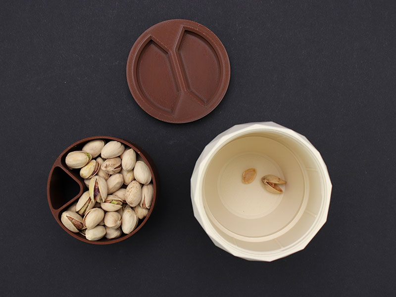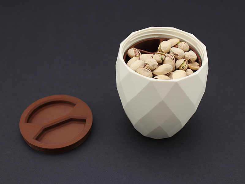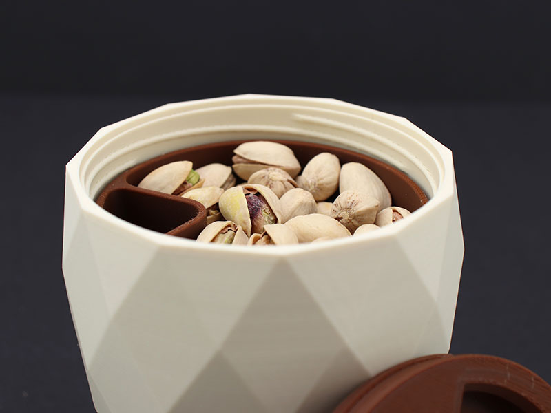 Насолоджуйтесь улюбленими фісташками, насінням чи іншими снеками без зайвого безладу! Цей стакан для фісташок з подвійним дном, надрукований на 3D-принтері, є ідеальним рішенням для чистого та зручного споживання.